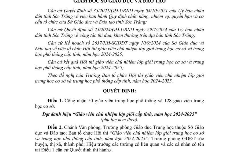 Căn cứ Quyết định số 264/QĐ-SGDĐT, ngày 14/01/2025 về việc công nhận danh hiệu Giáo viên chủ nhiệm lớp giỏi cấp tỉnh năm học 2024-2025. Hôm nay, nhà trường vô cùng vinh dự chúc mừng cô Lưu Tú Hương và cô Trịnh Thị Hồng Cúc đã xuất sắc đạt danh hiệu ...